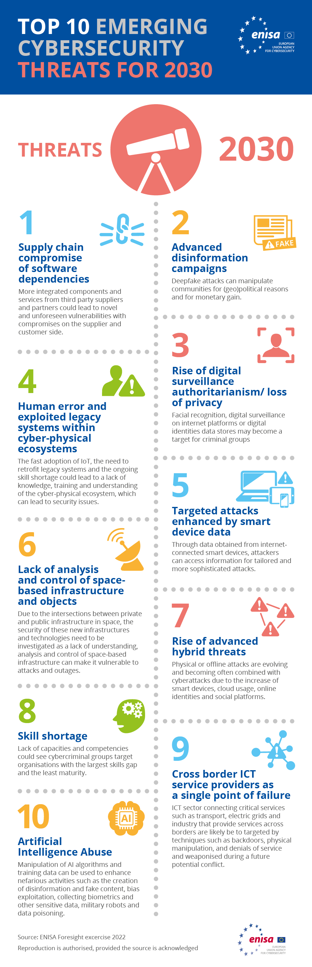 ENISA has released their top cyber threats most likely to emerge by 2030. I would say that many of the listed issues are already present today, though might be getting less media attention than some other areas. As usual, I’m pleased with the attention given to topics close to my personal interests so I can do nothing else than highlight those